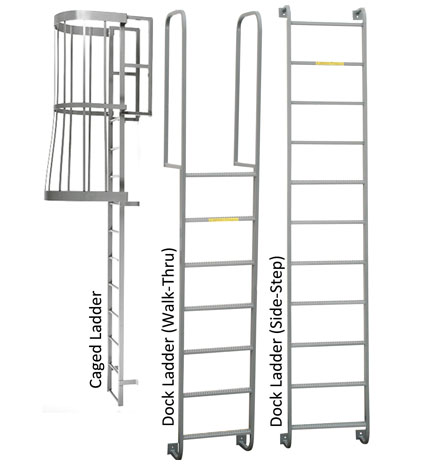 Standard vertical ladders and caged ladders are the ladders you typically see on the sides of buildings to access rooftops. After a certain height, depending on your building codes, a cage is required for added safety. Walk-thru style handrails at the top of the ladder allow workers to walk onto the next level with safety in mind. We build these to any height requested by the customer. We also create custom designs to meet specific building codes and customer needs.