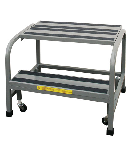We realized that our portable work platforms had a need in the office environment. The mobile office stand has the same construction, but has a less aggressive design. Spring loaded casters and grip tape treads create a comfortable surface for office workers with dress shoes and high heels.